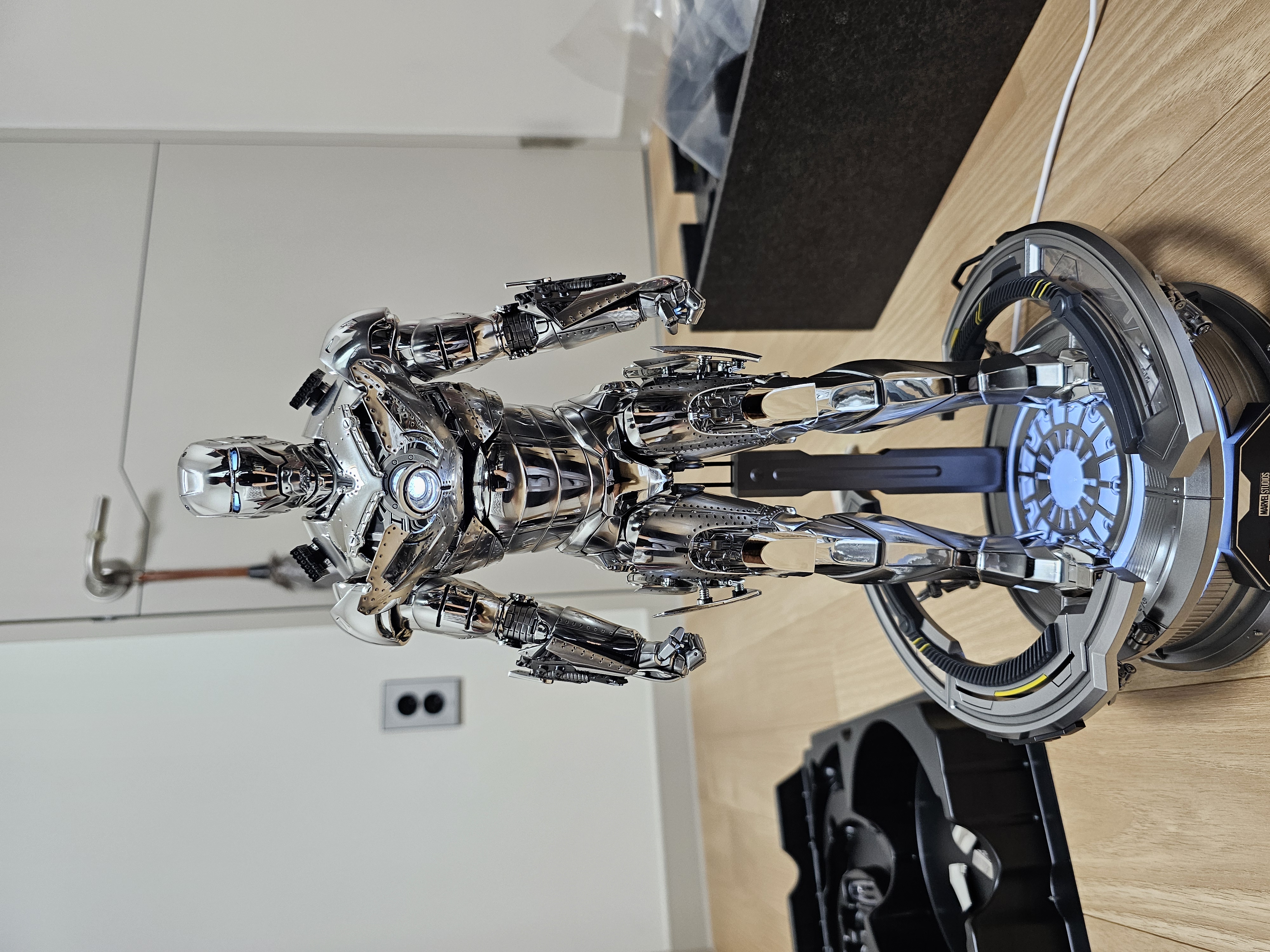 이번 핫토이 마크 2 2.0은 언마스크 헤드부터 실버 크롬 도색으로 엄청난 광을 보여주는 제품이어서 매우 잘 나온 제품이었습니다. 그렇기에 현재 최근 나온 아이언맨 제품 중 유일하게 프리미엄까지 형성되어 출시가 62만 원에서 현재 70만 원 초중반에 거래되는 제품입니다. 다만 실버 크롬 도색 특성상 도색 흠집 나 미스가 다른 제품에 비해 눈에 띄기에 아쉬운 제품입니다. 저 같은 경우 스크래치와 도색 미스가 발견되어 AS신청을 해봤으나 6개월 초과 1년 이상 소요된다 하여 결국 그냥 소장하기로 했네요 ㅠㅠ 가격이 가격인지라 QC와 AS에 좀 더 신경 써주었으면 좋겠다는 생각이 든 제품이었습니다..